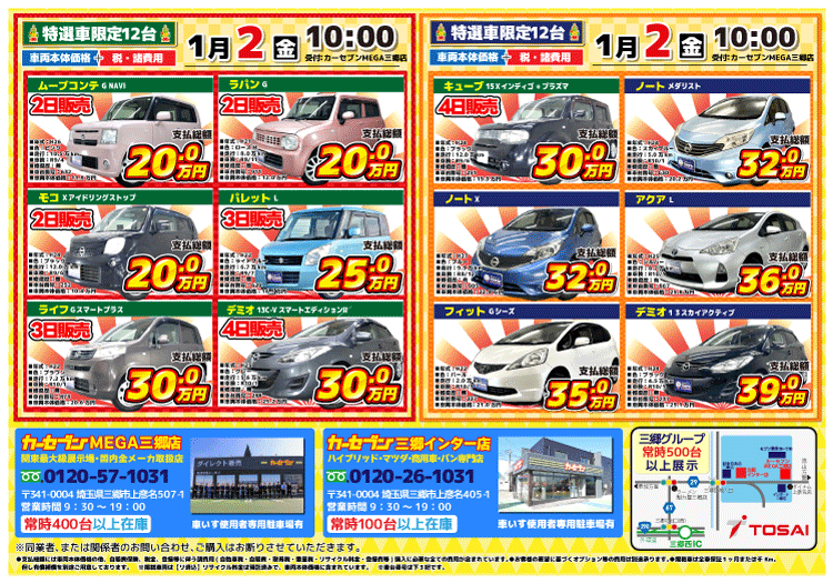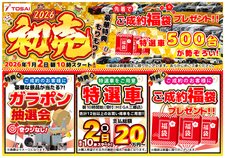 【初売】カーセブンMEGA三郷インター店大売出し開催!! 2日からスタート【3大特典】